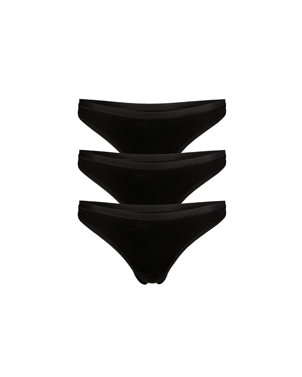 Komfort und Nachhaltigkeit – das sind die Schlagworte für alle, die sich für Damen-String-Slips von menique entscheiden. Noch dazu ist das 3er-Pack String-Slips für Damen ein echtes Preis-Leistungs-Wunder. Aus 100 % Merinowolle gefertigt, ist diese Unterwäsche mit 160 g/m² leicht und alle drei Paare sind in klassischem Schwarz gehalten. Der Stoff verfügt über antimikrobielle und geruchsresistente Eigenschaften, schützt den Körper also vor Überhitzung und Schwitzen bei Tag und Nacht. Weich, atmungsaktiv und schnell trocknend – diese String-Slips mit elastischem Bund sind immer einsatzbereit. Also greifen Sie zu drei statt nur einem Paar und öffnen Sie Ihren Koffer, Madam.
