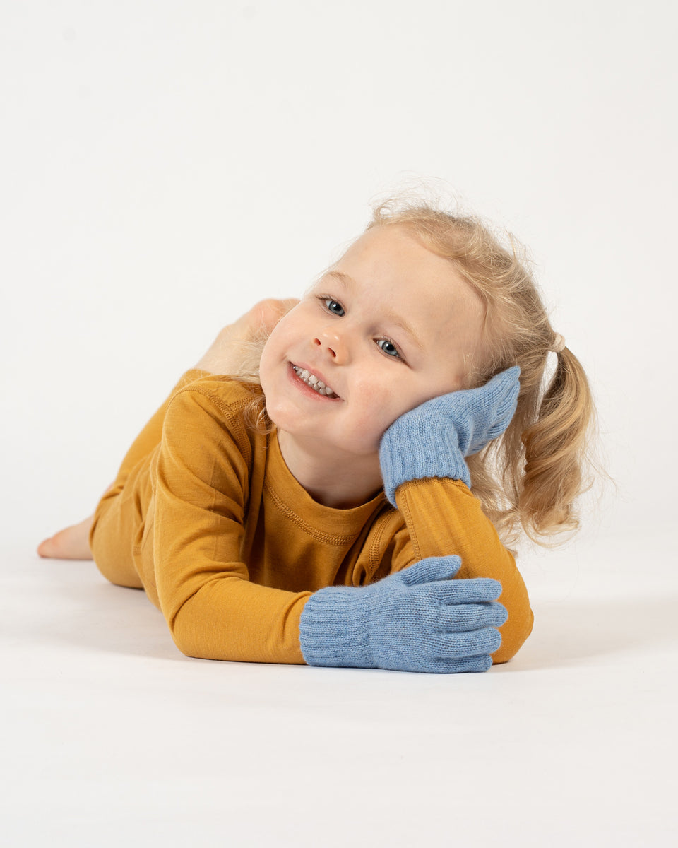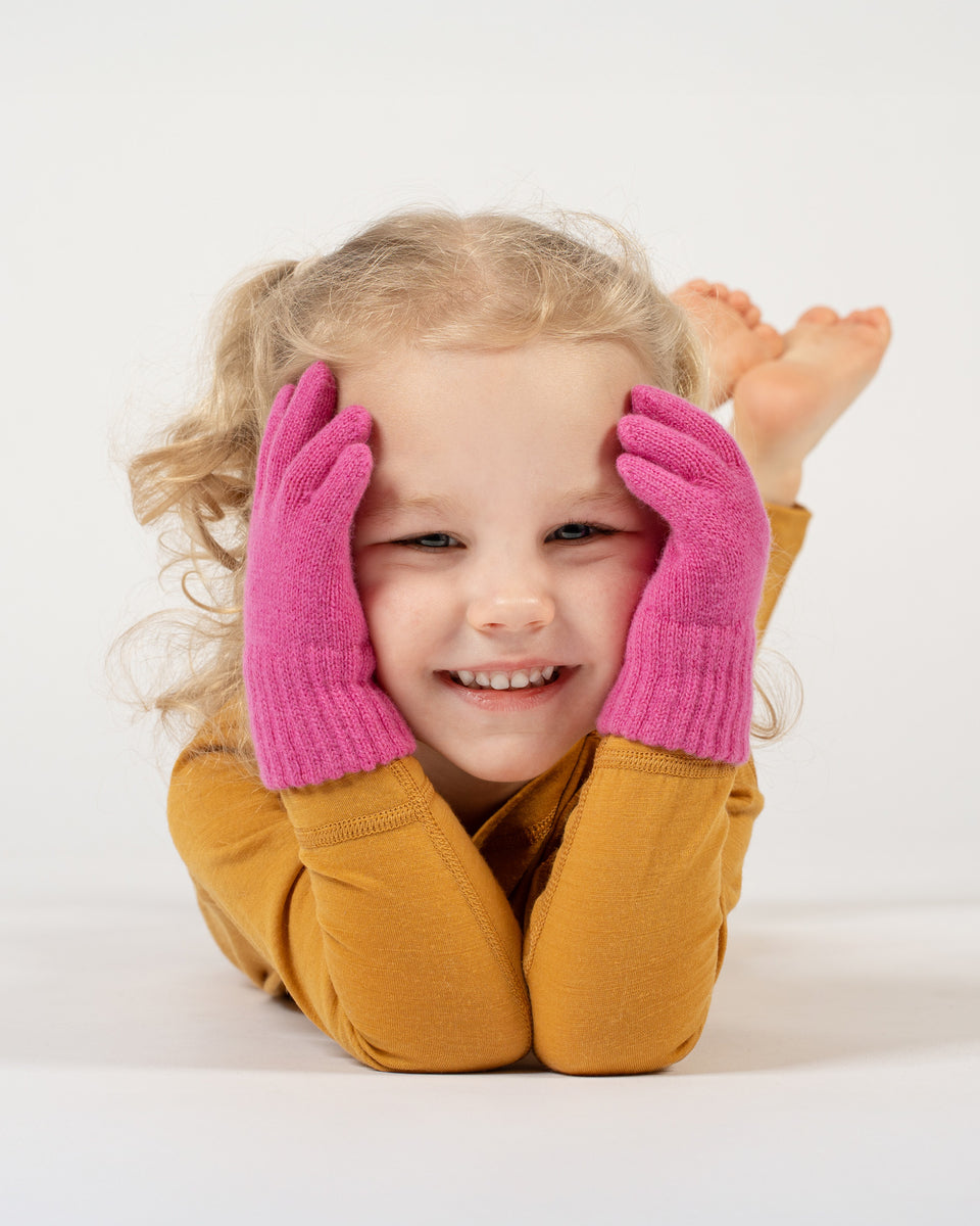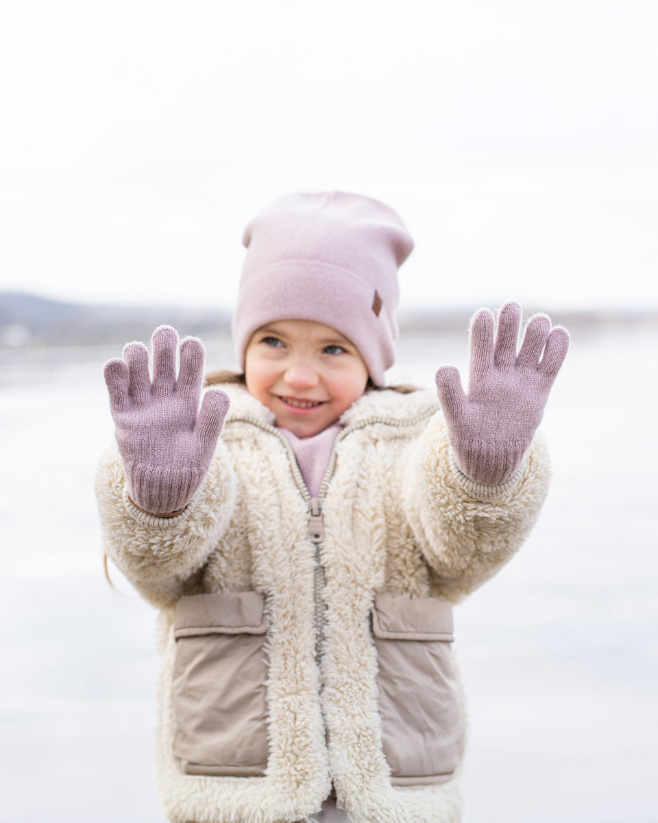 Kalte Temperaturen erfordern viel Überlegung zum Schutz Ihres kleinen Lieblings, aber die Hauptaufgabe ist, die besten Handschuhe zu finden, die warm und bequem halten. Unsere vollfingerigen Handschuhe für Kinder sind aus einer Mischung aus natürlicher Merinowolle und Kaschmirgarn gestrickt, sie sind thermoregulierend und feuchtigkeitsableitend und halten die Hände und Finger Ihres Kleinkindes besonders warm. Das extra dehnbare Strickmaterial sorgt für eine enge, sichere Passform, damit die Wollhandschuhe nicht verrutschen, und bietet gleichzeitig genügend Bewegungsfreiheit zum Spielen ohne Einschränkungen. Außerdem sind diese Handschuhe lang genug, um die Hände der Kinder vor Schnee zu schützen, der sonst durch die Bündchen in die Ärmel gelangen könnte.