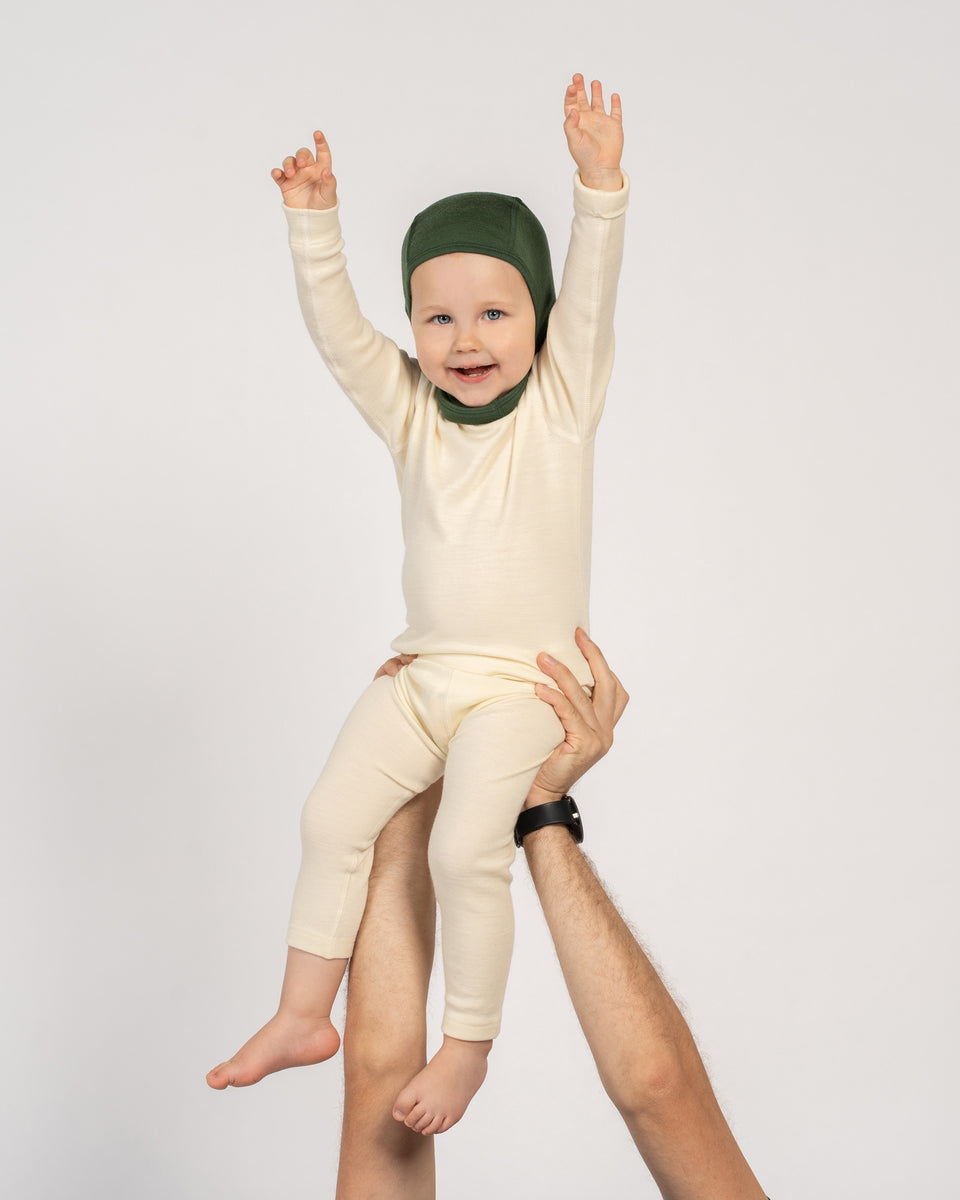 Erleben Sie Babys erste königliche Erfahrung mit unserem superweichen, leichten Merinowoll-Pullover, der für ultimativen Komfort und Wetterfestigkeit entwickelt wurde. Dieses Langarmshirt aus 160 g/m² Merinowolle ist flexibel, sonnenschützend und perfekt als Alternative zum Schlafanzug, verhindert Überhitzung ohne die empfindliche Haut zu reizen. Hergestellt aus biologischem, nicht kratzendem Material, verfügt es über Flatlock-Nähte für extra Glätte und ist antibakteriell für ganztägige Weichheit. Die natürliche Basisschicht leitet Feuchtigkeit ab, reguliert die Körpertemperatur und sorgt dafür, dass Ihr Baby kuschelig und schweißfrei bleibt – sicherheitsbewusst gestaltet und eine perfekte Ergänzung für jedes Outfit.