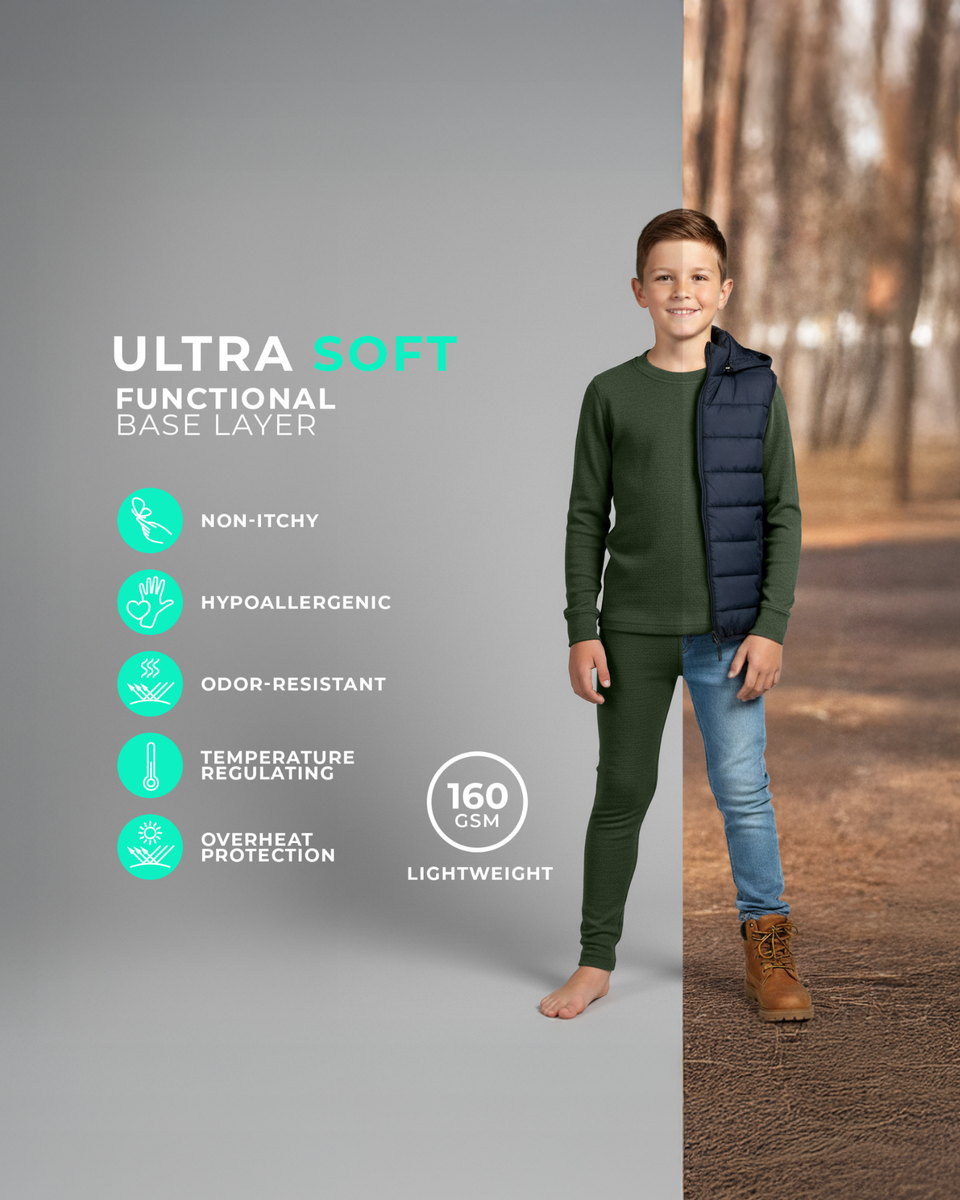Das menique Combo bietet ein modernes, unisex Design, handgestrickt aus 100 % umweltfreundlicher Merinowolle, bestehend aus einem 160 g/m² Langarmshirt und passenden Hosen. Hell, verspielt und langlebig, bietet dieses zweiteilige Set zeitlosen Stil und Komfort für kleine Entdecker, vom Morgen bis zum Abend. Für tägliche Abenteuer gemacht, sorgt das weiche, nicht kratzende Material für Bewegungsfreiheit und hält Ihr Kind im Winter warm und im Sommer kühl. Hergestellt aus Bio-Merinowolle, ist es sanft zur Haut und zum Planeten, bietet UV-Schutz, antimikrobielle Eigenschaften und eine einfache, fleckenresistente Pflege für vielbeschäftigte Mütter. Perfekt für den täglichen Kuschelkomfort.