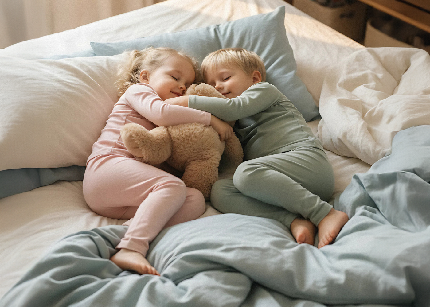 Kuscheltaugliche Schlafbekleidung Unsere Bambus-Schlafanzughosen sind gemacht für süße Nickerchen und gemütliche Nächte. Das ultraweiche, seidenähnliche Bambusstrick ist sanft zur empfindlichen Haut und von Natur aus hypoallergen und antibakteriell, sodass kleine Schläfer bequem und frisch bleiben. Die feuchtigkeitsableitenden und temperaturregulierenden Eigenschaften von Bambus helfen, Überhitzung zu vermeiden, halten warm an kühlen Nächten und angenehm kühl, wenn der Raum wärmer wird. Der dehnbare, eng anliegende Schnitt und der weiche elastische Bund ermöglichen sichere Bewegungen und reduzieren lose Stoffbahnen. Ideal zum Rollen, Treten und für das Zappeln vor dem Schlafengehen. Robust genug für den täglichen Gebrauch und pflegeleicht, passen diese Bambus-Leggings perfekt zu einem passenden Bambus-Oberteil oder Schlafsack für zusätzliche Wärme. Leicht und dennoch hochwertig, sind Bambushosen eine ruhige, verlässliche Wahl für Schlaf, Nickerchen und ruhige Morgen mit Ihrem Baby.