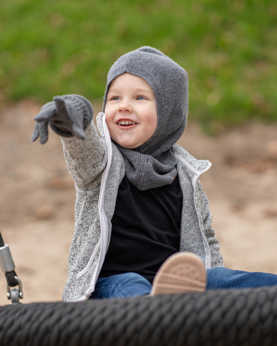 Halten Sie die Hände Ihres Kindes mit diesen weichen Merinowollhandschuhen warm und bequem. Ideal für das tägliche Spielen bietet das feuchtigkeitsableitende Merinowollmaterial Wärme und Komfort, perfekt für kalte Morgen und Outdoor-Abenteuer. Das robuste und dennoch flexible Design hält aktiver Beanspruchung stand und reduziert den Bedarf an Ersatz. Mit einem einfachen Schlupfdesign sorgen diese Handschuhe dafür, dass kleine Hände warm und geschützt bleiben.