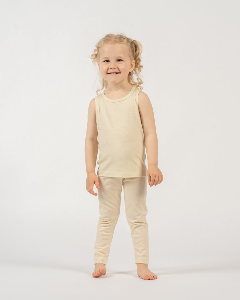 Führen Sie Ihren kleinen Liebling mit diesem ärmellosen Top- und Leggings-Set in ultimativen Komfort ein. Hergestellt aus hochwertiger 100% Merinowolle bietet es unvergleichliche Bewegungsfreiheit, damit kleine Entdecker die Welt uneingeschränkt erkunden können. Wir wissen alle, wie neugierig unsere Kleinen sind, immer bereit zu bewegen, zu berühren, zu sehen und zu fühlen. Für ein angenehmes Tragegefühl direkt auf der Haut entworfen, sorgt der atmungsaktive und elastische Stoff für ein juckfreies Erlebnis, während seine natürlichen thermoregulierenden Eigenschaften sie Tag und Nacht komfortabel halten. Ein vielseitiges Must-have, dessen schlichtes Design und schwarze Farboptionen jeden Look mühelos ergänzen und dafür sorgen, dass Ihr Kind glücklich und bequem bleibt, wohin auch immer seine Neugier es führt.