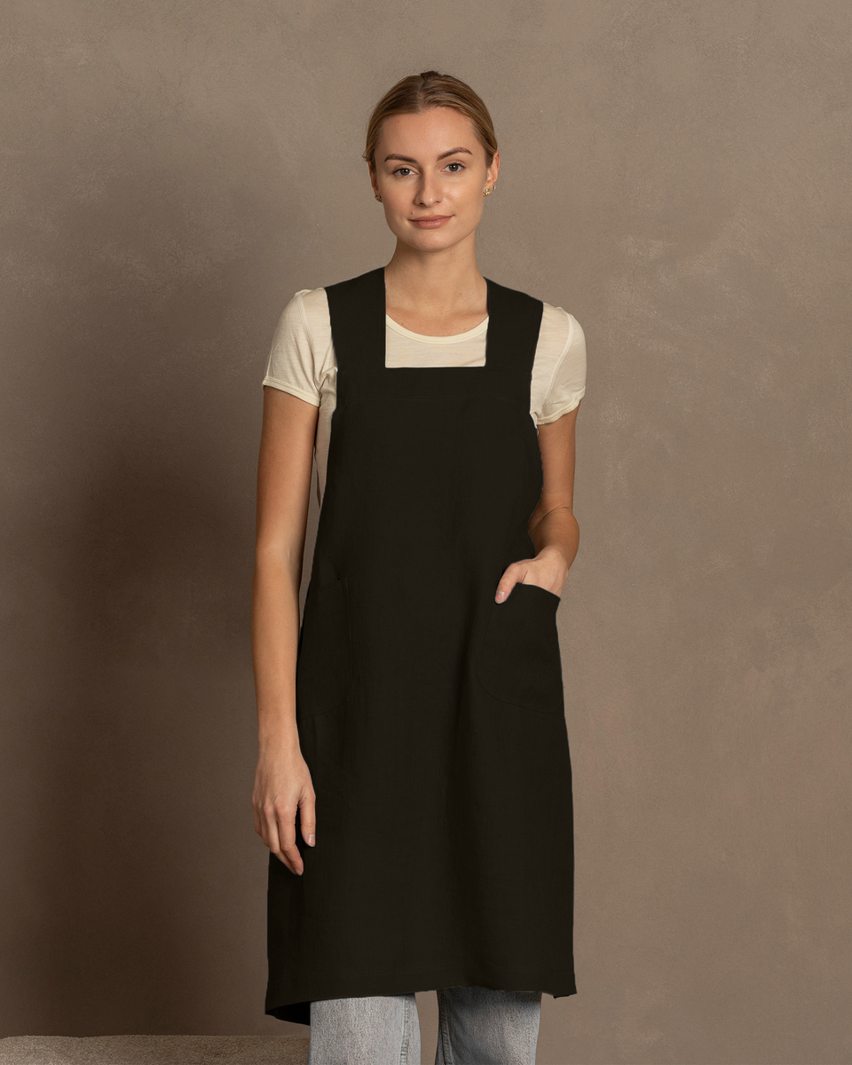Erleben Sie Komfort und Funktionalität in der Küche, im Atelier oder an jedem Arbeitsplatz mit unserer hochwertigen Kochschürze aus Leinen. Hergestellt aus 100 % natürlichem Leinen, verfügt diese japanische Schürze über einen leicht verstellbaren Kreuzrücken, der sich fest um Ihren Körper legt, ohne alle 10 Minuten abzurutschen. Diese schürzenlose Schürze ist ideal für den täglichen Gebrauch, Kochsessions oder sogar intensive Kunstprojekte. Das natürliche Leinenmaterial sorgt für Atmungsaktivität und Langlebigkeit und macht sie zu einer bequemen und eleganten Wahl für jeden Nutzer.